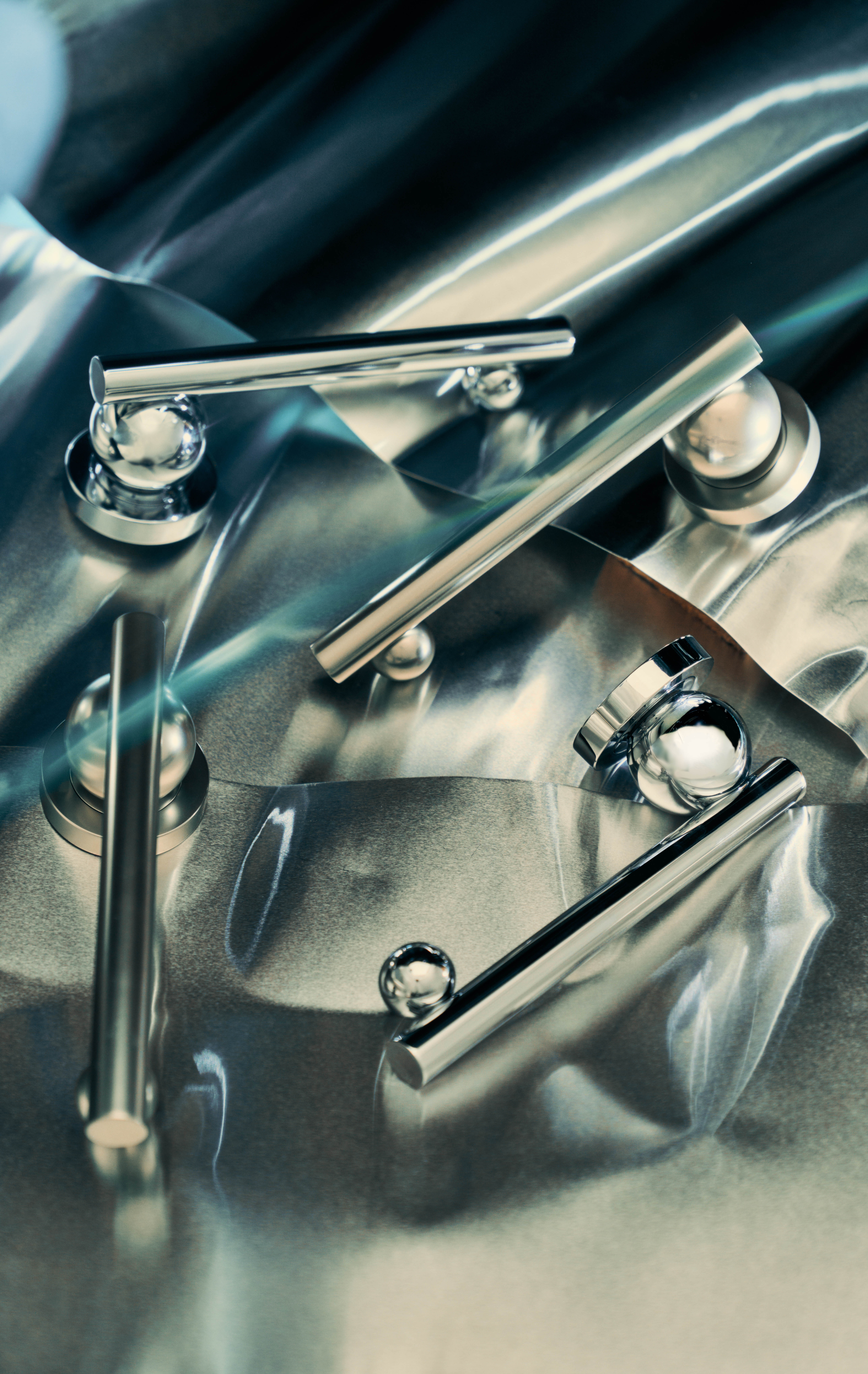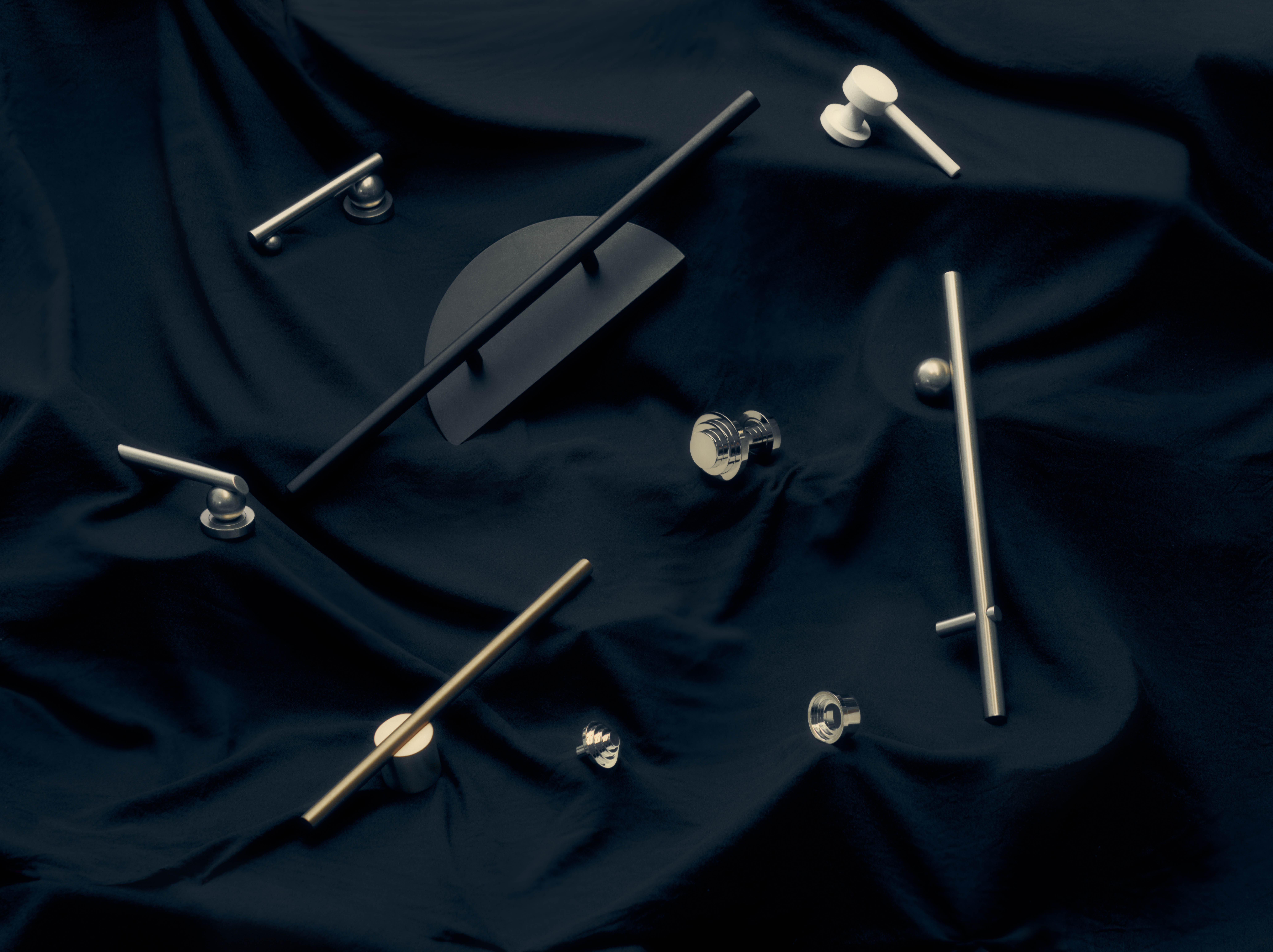 We developed the idea of five unique items, these items would speak to each other to create an overall design language, a family of pieces that were not all the slight variations of each other, but distinct and with their own personalities. The idea here was to increase the spaces and places the hardware could be used. This allowed us to experiment with forms and create five very different pieces. We played with shapes; spheres, cones, chamfers, steps, lines and dots arranged to make functional and beautiful objects.